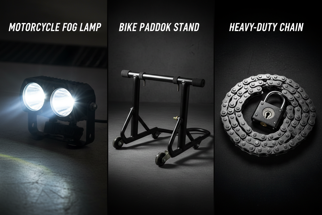 Transform your ride with our Premium Bike Accessories Crash guards, Saddle stays, Carriers, Side stand bases, GPS mounts, and more built tough for maximum protection, bold style, and unstoppable performance on every adventure.