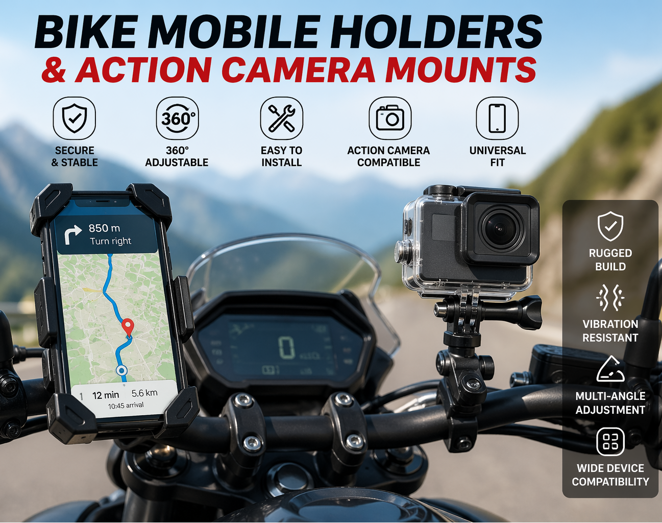 Secure your smartphone and action camera with durable, vibration-resistant bike mounts that...